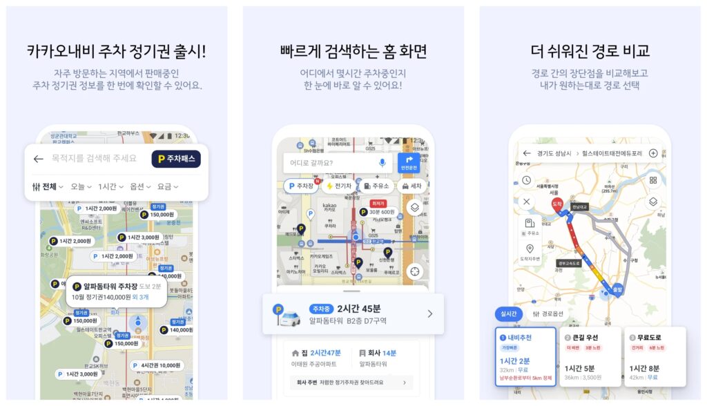 카카오내비 – 길 안내와 동시에 무료 주차장 안내